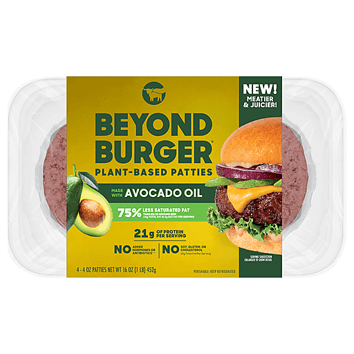 We made the first one. Then we made an even better one. Our latest and greatest Beyond Burger goes well (above and) beyond. It's an excellent source of protein (21g per serving), has 0mg cholesterol per serving, and is lower in saturated fat (75% less than 80/20 beef per serving). Made from plant-based ingredients - like peas and brown rice - our Beyond Burger has no GMOs, soy or gluten. Each pack contains 4 plant-based patties. Better for your health, for your planet, for your BBQ. (Contains 14g Total Fat per serving)