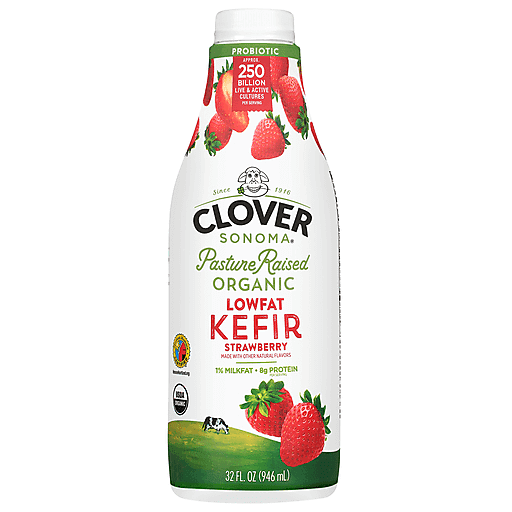 Clover Sonoma 1% Milkfat Organic Lowfat Strawberry Kefir 32 fl oz