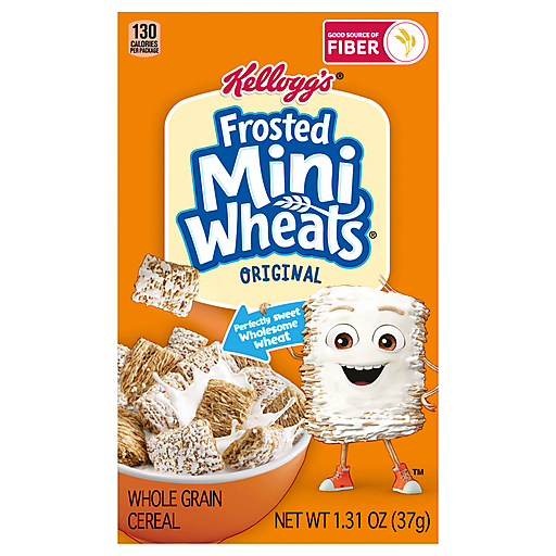Greet the day with Kellogg's Original Frosted Mini-Wheats - a wholesome, low fat breakfast cereal. The baked, bite-size biscuits feature crunchy layers made from 100% whole grain that have been frosted for the perfect amount of sweet flavor in every bite. With 29 grams of whole grain per serving, these tasty squares are not only delicious but also provide a good source of fiber. Not just for breakfast, Kellogg's Frosted Mini-Wheats cereal is a tasty and nutritious addition to any meal or snack any time. Enjoy as a well-deserved treat at the office, take in an afternoon pick-me-up, reenergize with a post-workout bite, and indulge in a late-night bowlful of sweet, crunchy cereal. You can also fill baggies with cereal to pack in lunch boxes or to take along for out-of-home excursions like field trips, hikes, or sporting events - the delicious options are endless. Treat yourself to a bowlful of Kellogg's Frosted Mini-Wheats to help give you the energy for what lies ahead.