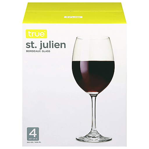 Catch every nuance in bold red wine with the St. Julien Bordeaux Glass, crafted from lead-free crystal to collect the tastes and aromas of juicy berries, dark stone fruits, tobacco and earthy tannins that made Bordeaux famous.Holds 18 ozSet of 4Lead-free crystalFor bold red winesDishwasher safeGreat housewarming or wedding gift!